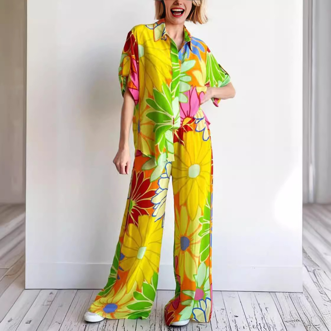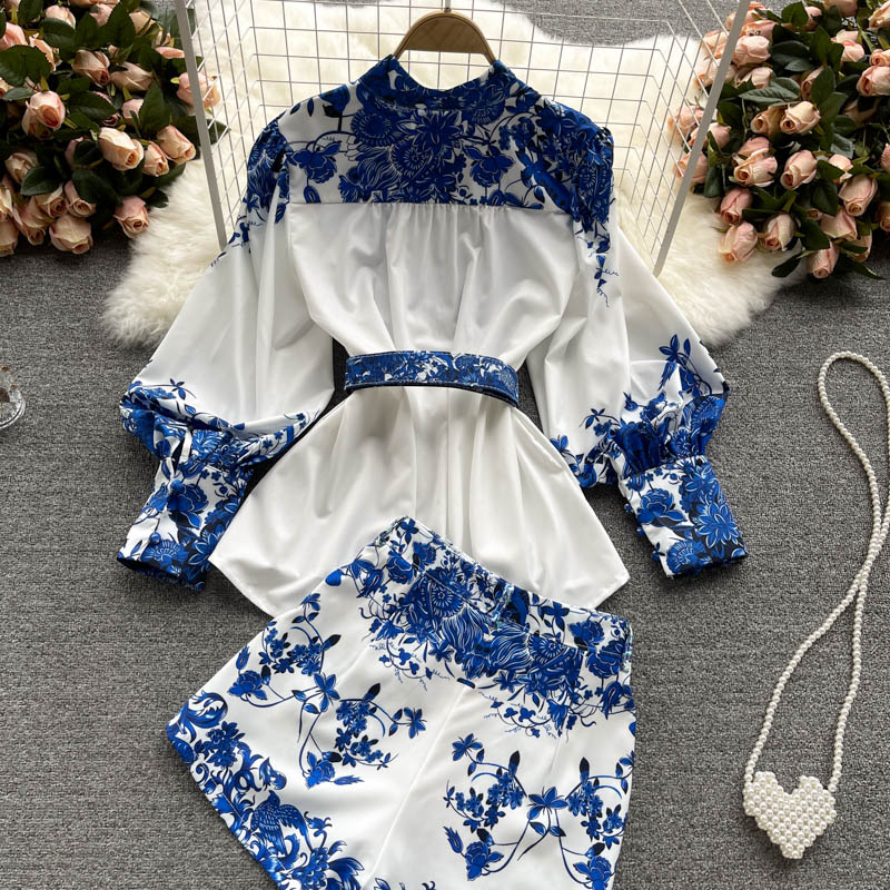 High Collar Midriff-baring Loose Wide Leg Library Suit