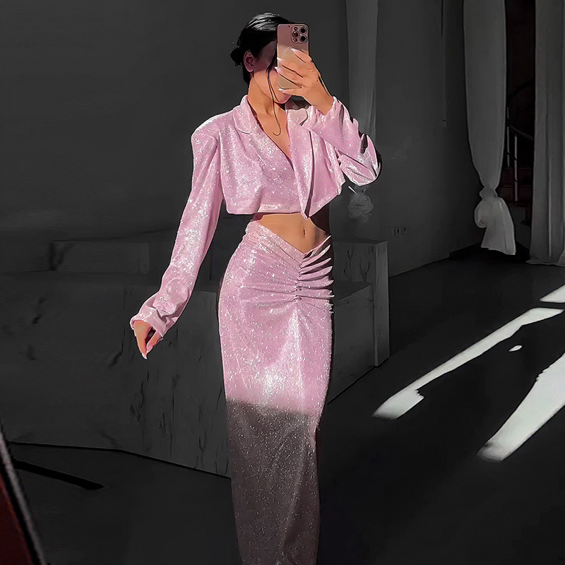 Summer Boat Neck Off-the-shoulder Short Tube Top High Waist Long Skirt Two-piece Set Fashion Suit