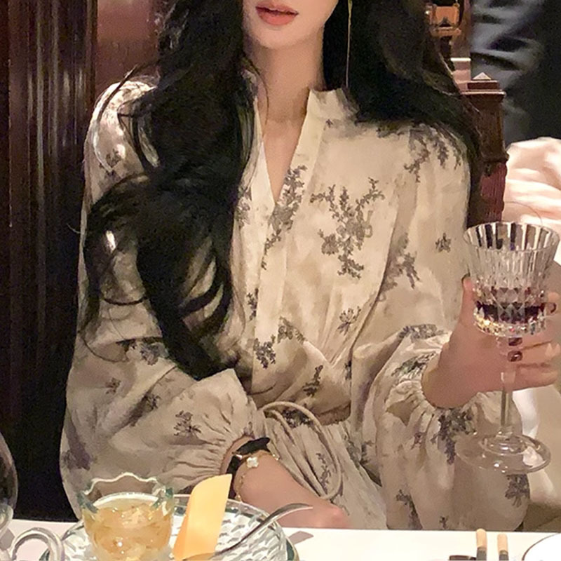 Summer Women's Vintage Printed Bohemian Dress Elegant Ladies Casual Loose V-Neck Short Sleeve Long Dresses